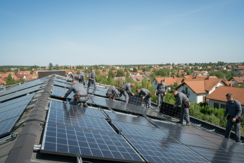 Монтаж сонячних електростанцій — це комплексне рішення, що включає підбір обладнання, проєктування та професійне встановлення СЕС під потреби будинку чи бізнесу. Ми виконуємо розташування панелей з урахуванням орієнтації, кута нахилу та тіньових зон, щоб забезпечити максимальну продуктивність системи.